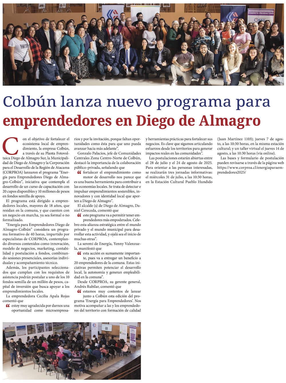 Lanzan nuevo programa para emprendedores en Diego de Almagro - (El Diario de Atacama)