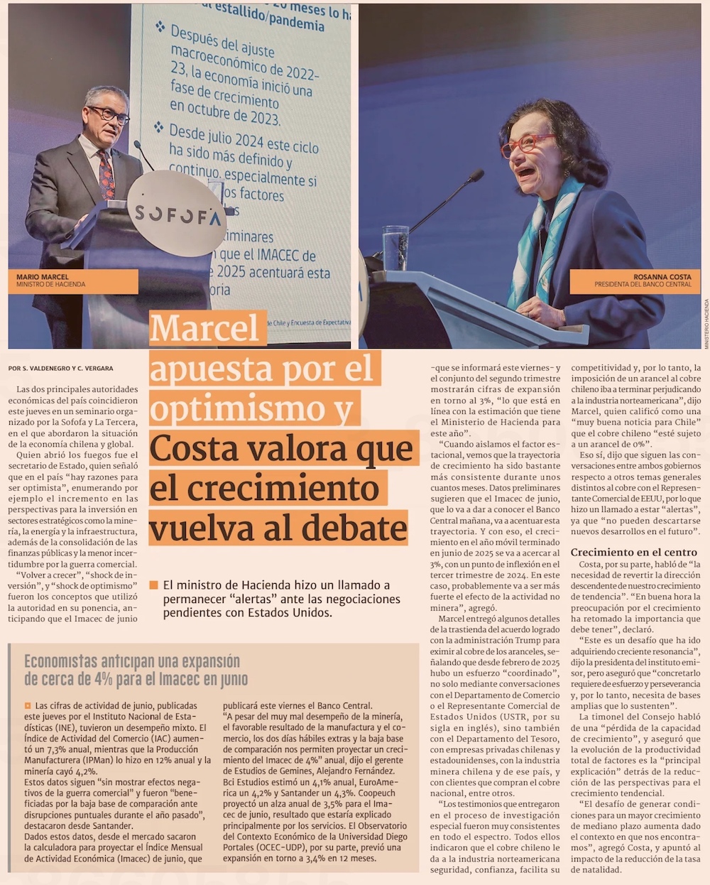 Marcel asegura que la economía ya “crece más rápido” y endosa la deuda pública al próximo gobierno - (El Mercurio de Santiago)