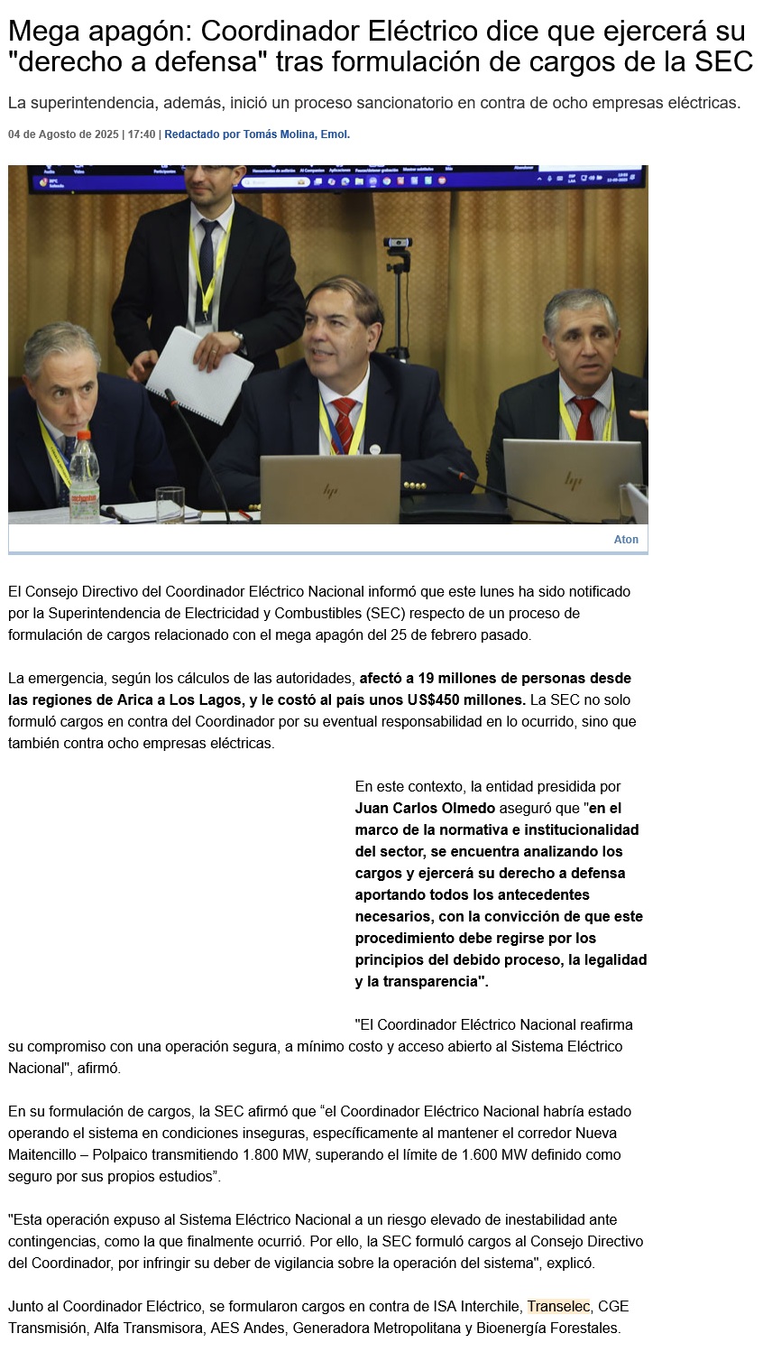 emol - Lunes, 4 de Agosto de 2025