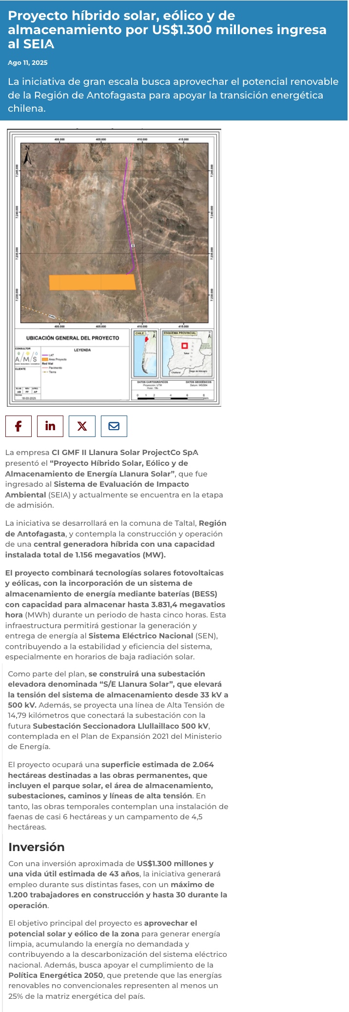 Fondo danés ingresa al SEIA proyecto solar y eólico por US$ 1.300 millones - (El Mercurio de Santiago)
