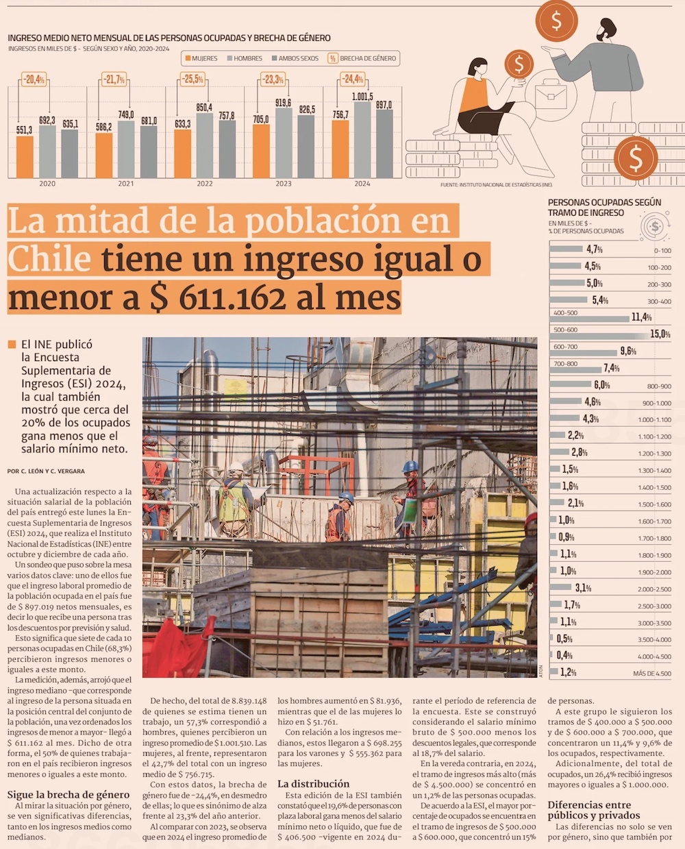 Brecha de género en ingresos crece en medio de caída en empleo femenino - (El Mercurio de Santiago)
