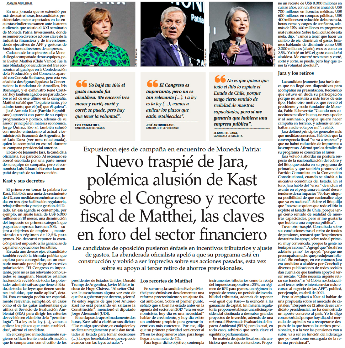 Kast y Matthei prometen fuerte recorte del gasto público y Jara anticipa los tres ejes de su programa - (Pulso)