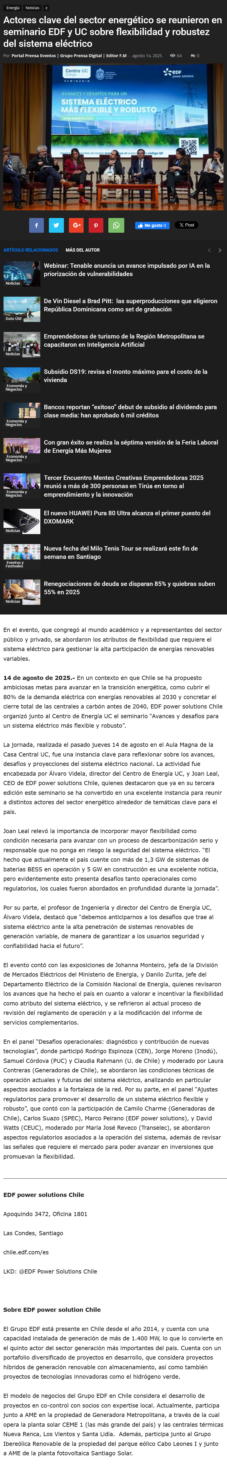 Actores clave del sector energético se reunieron en seminario EDF y UC sobre flexibilidad y robustez del sistema eléctrico - (portalinnova.cl)