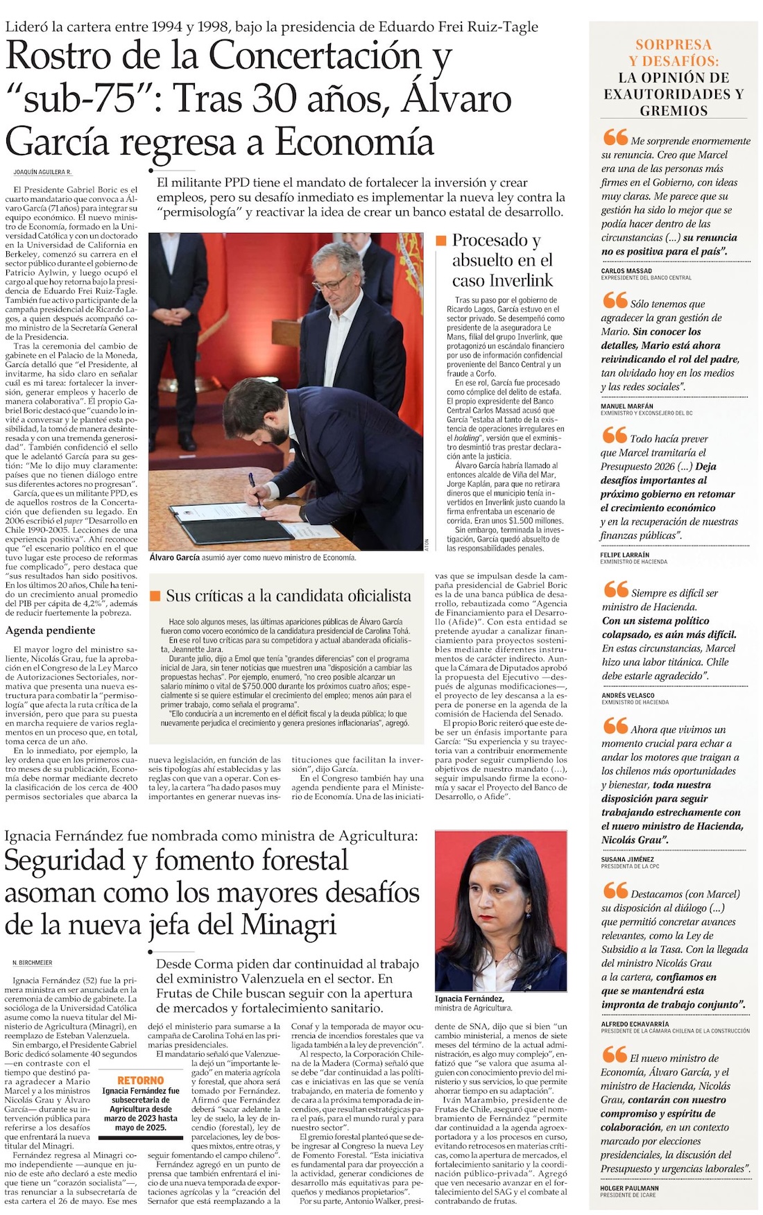 Renuncia de Marcel a Hacienda reconfigura el plan de Boric para su último tramo de gobierno - (La Tercera)
