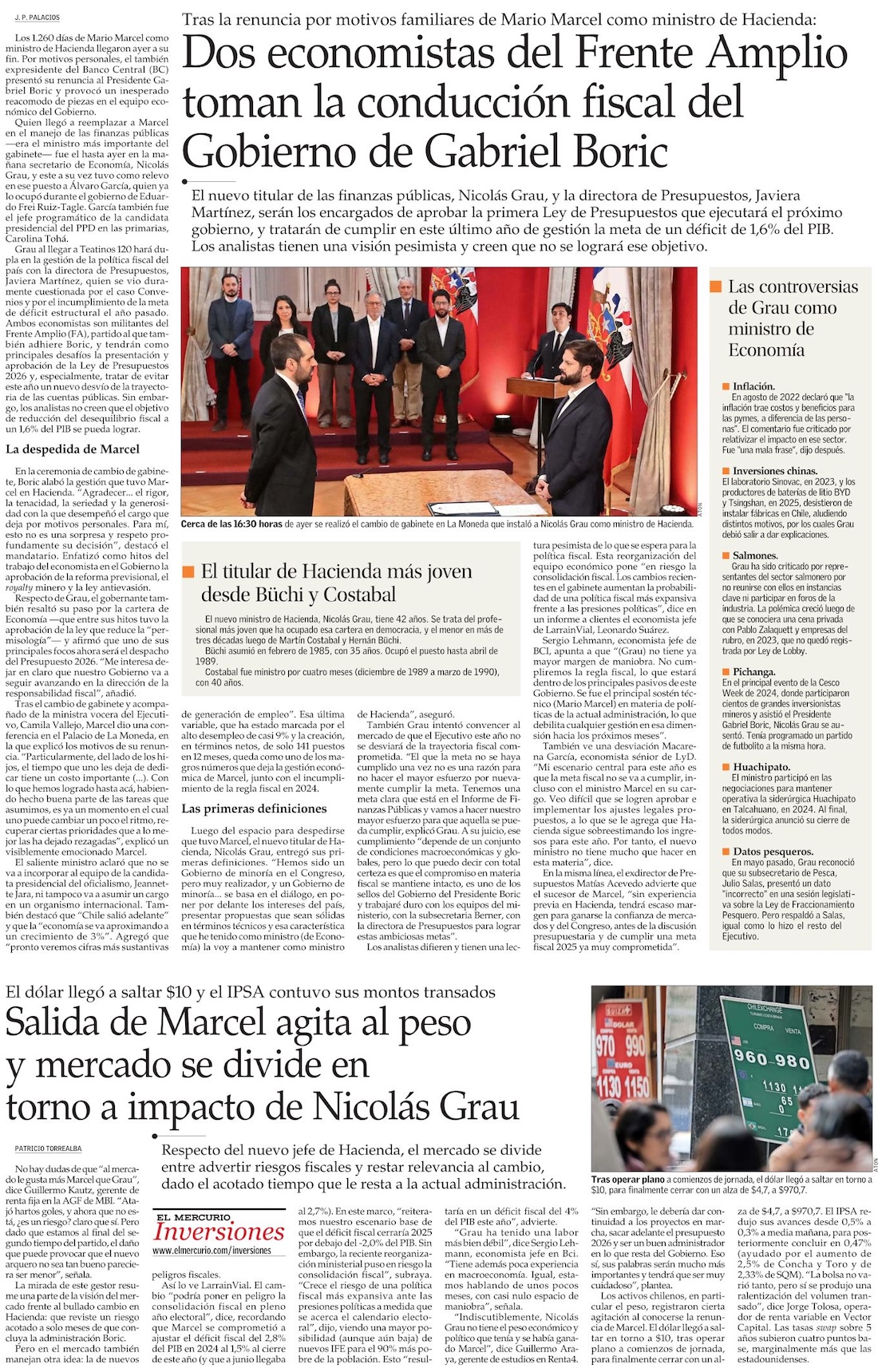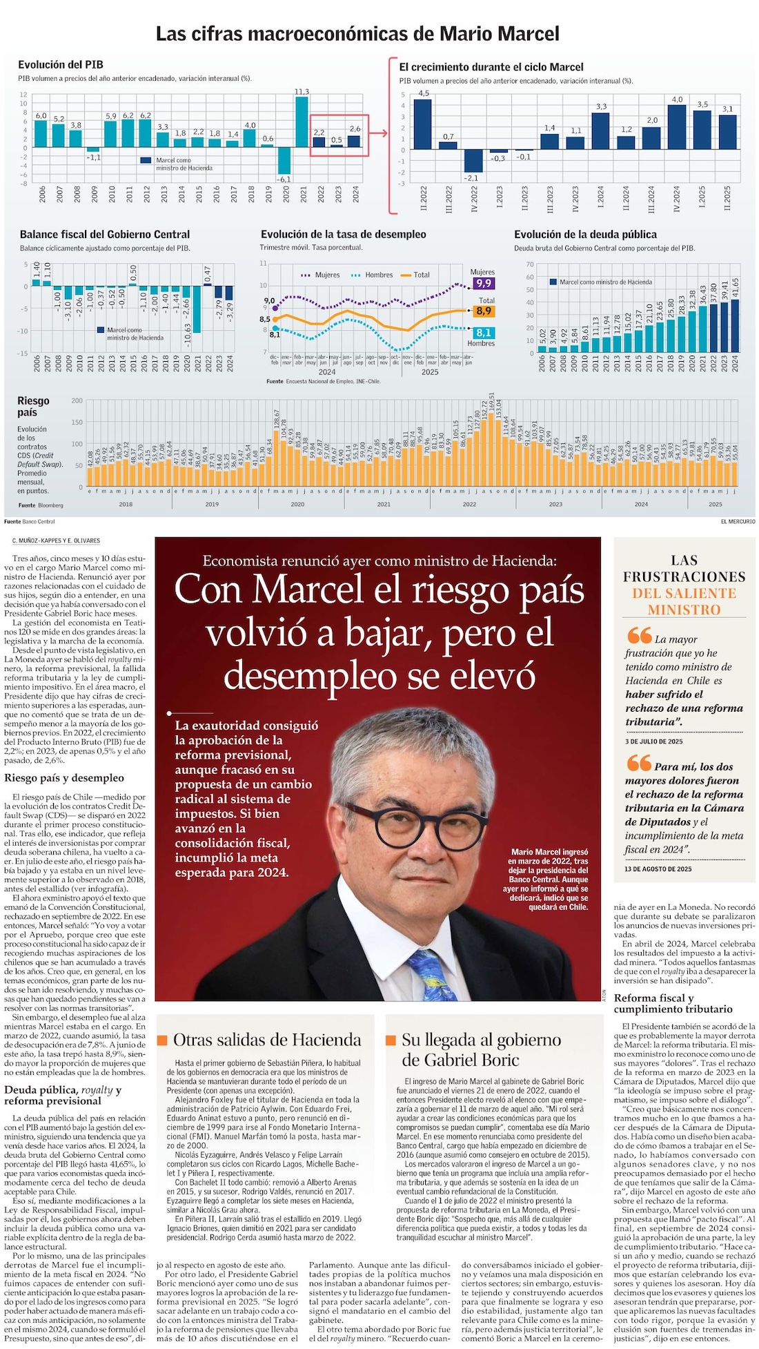 Renuncia de Marcel a Hacienda reconfigura el plan de Boric para su último tramo de gobierno - (La Tercera)