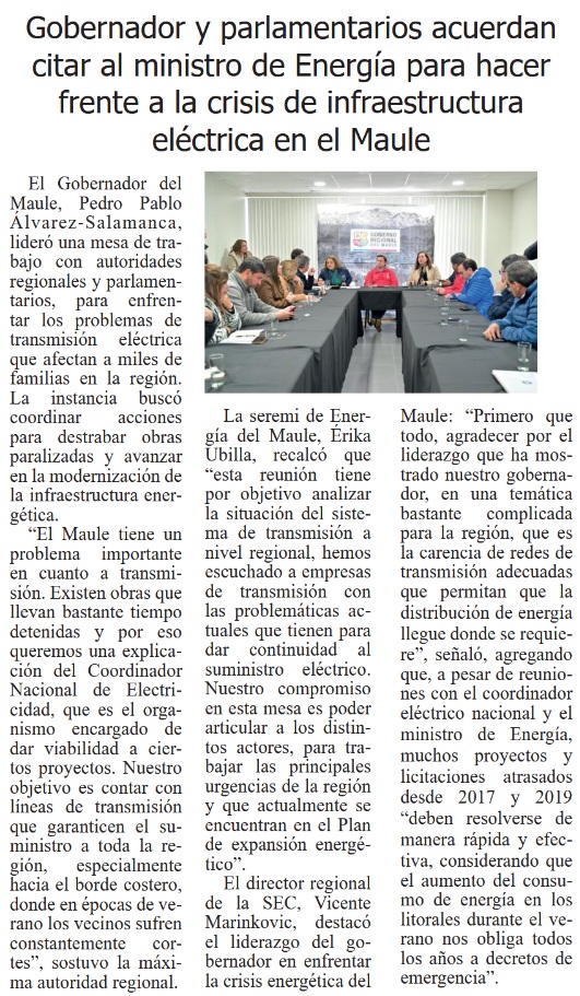 Gobernador y parlamentarios acuerdan citar al ministro de Energía para hacer frente a la crisis de infraestructura eléctrica en el Maule - (elmauleinforma.cl)
