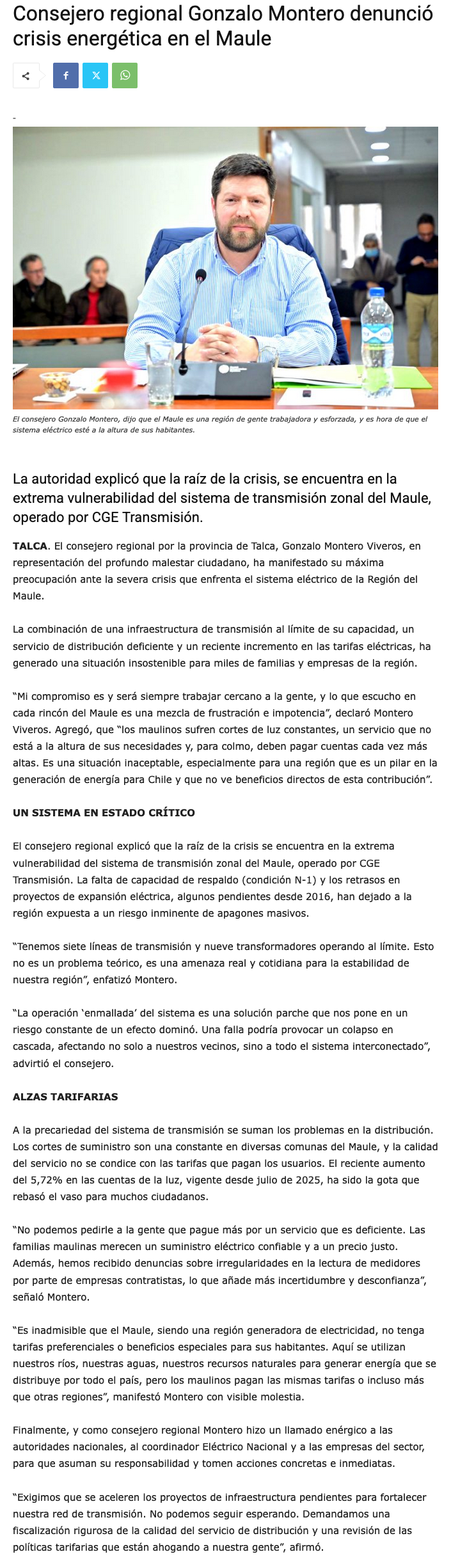 Modernización energética en el Maule: Gobernador y parlamentarios acuerdan citar al ministro de Energía ante crisis de infraestructura - (musicaynoticias.cl)