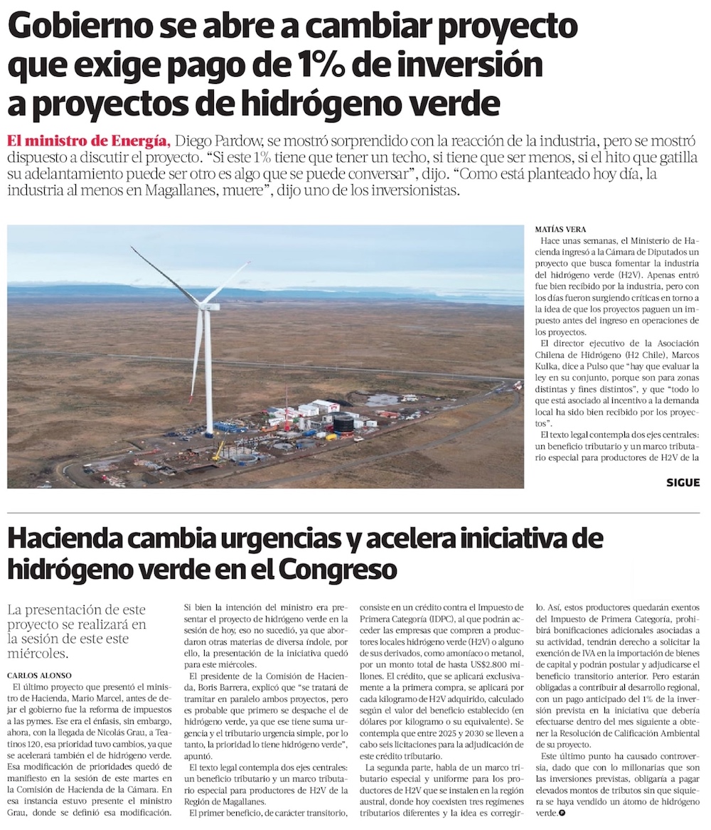 Pardow se abre a cambiar pago adelantado en el hidrógeno verde - (El Mercurio de Santiago)