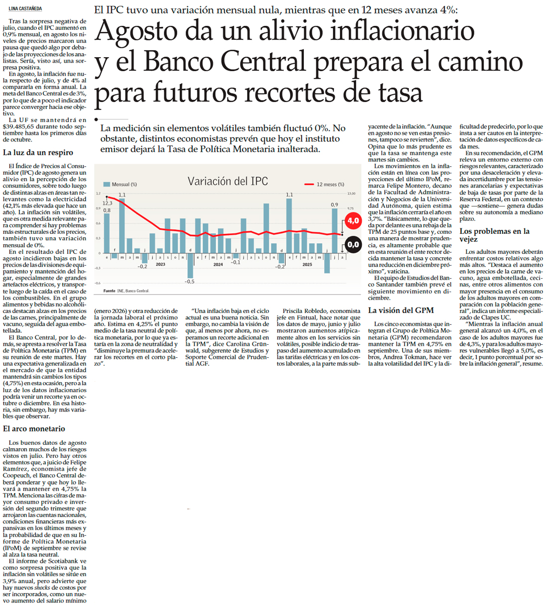 ¿Cierre de año bajo el 4%? Mercado celebra el plano IPC de agosto, pero descarta una baja de tasa este martes - (Diario Financiero)