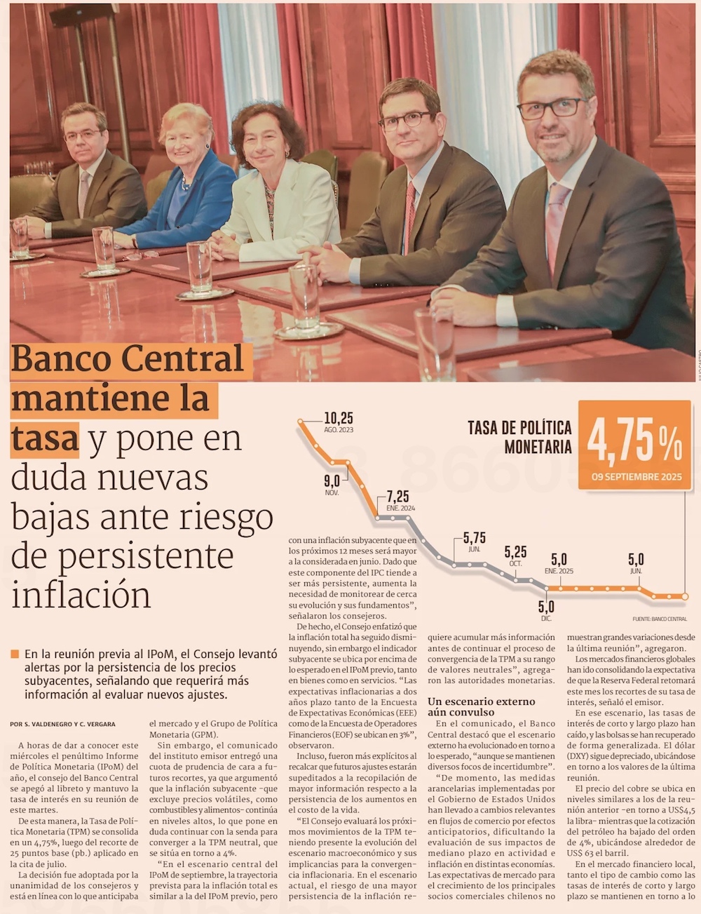 Ante “el riesgo de una mayor persistencia de la inflación”, el BC mantiene las tasas - (El Mercurio de Santiago)