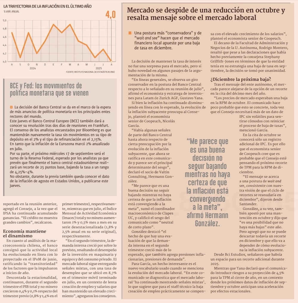 Ante “el riesgo de una mayor persistencia de la inflación”, el BC mantiene las tasas - (El Mercurio de Santiago)