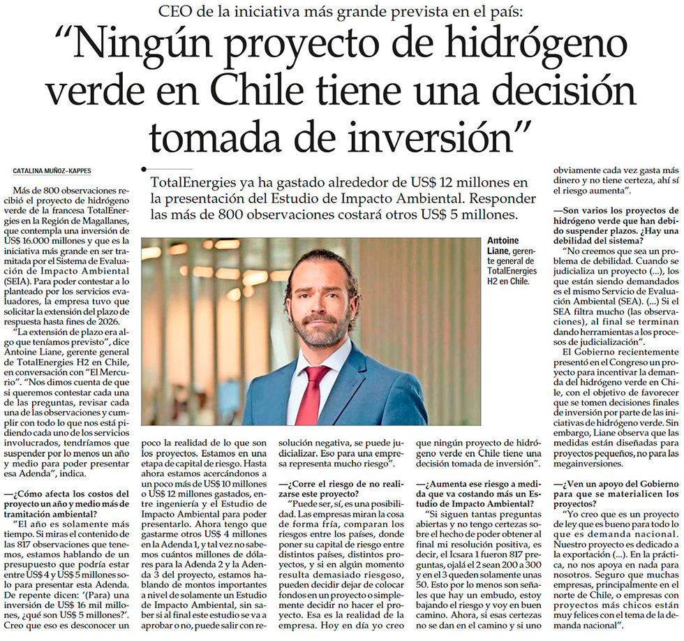“Aún siendo muy optimista, hay una probabilidad mayor de que el proyecto nunca exista” - (Diario Financiero)