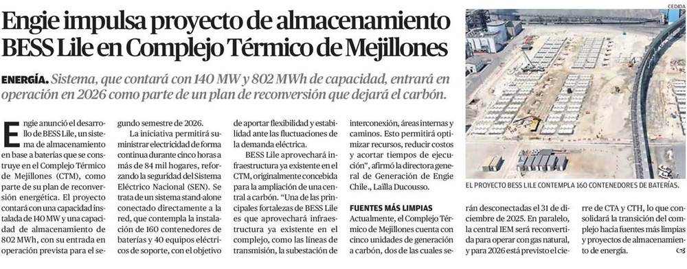 ENGIE Chile continúa su reconversión con proyecto de almacenamiento en el Complejo Térmico de Mejillones - (g5noticias.cl)