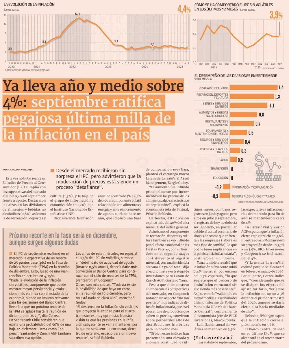 Inflación anualizada se acelera y recorte de tasa se aleja para fin de año - (El Mercurio de Santiago)