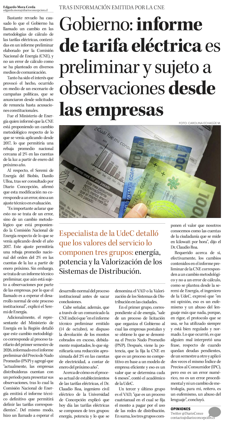 El error, o cambio metodológico, en las tarifas eléctricas que le costó al menos US$115 millones más a los consumidores - (Pulso)