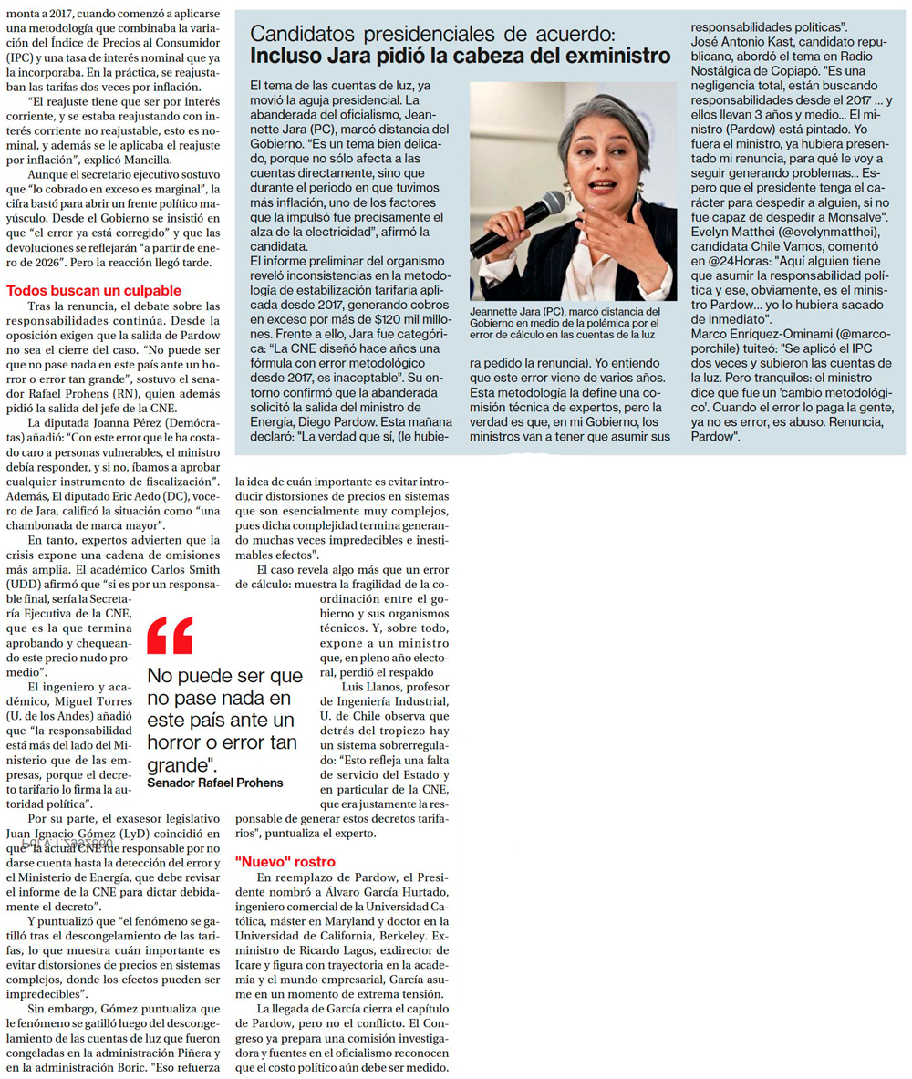 Presidente Boric remueve a Pardow para intentar frenar impacto de crisis de la luz en la candidata de su sector - (El Mercurio de Santiago)