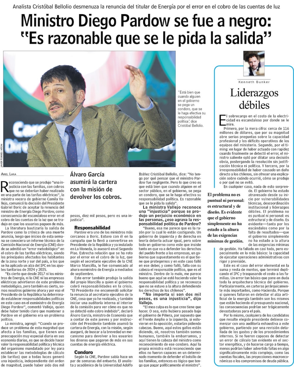 El último discurso de Pardow en Summit de Energía: “Esta coyuntura no es la que hubiera elegido” - (El Mercurio de Santiago)