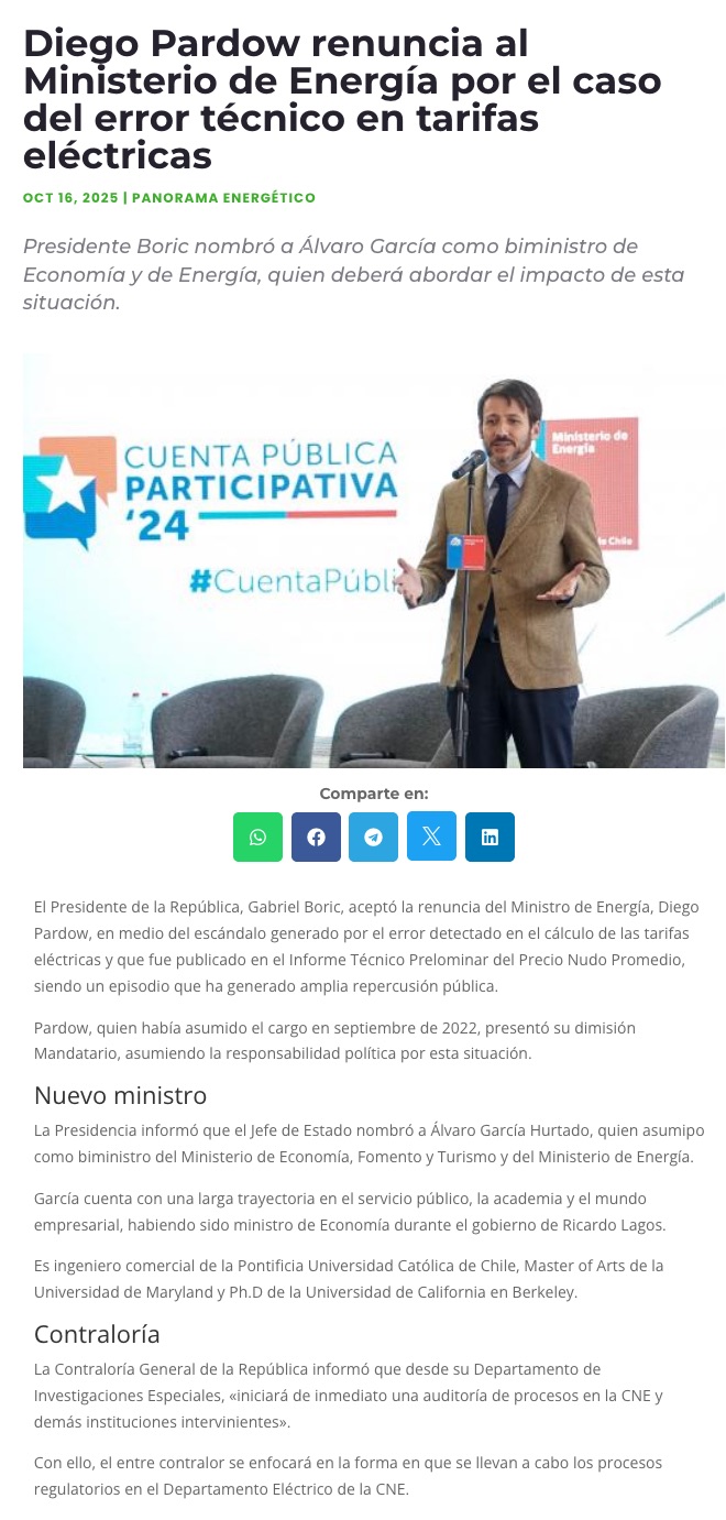 El último discurso de Pardow en Summit de Energía: “Esta coyuntura no es la que hubiera elegido” - (El Mercurio de Santiago)