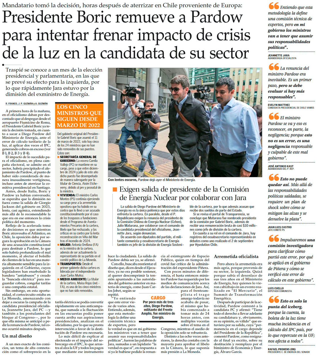 El último discurso de Pardow en Summit de Energía: “Esta coyuntura no es la que hubiera elegido” - (El Mercurio de Santiago)