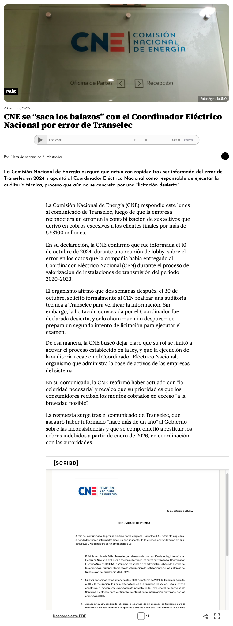 CNE responde a Transelec y aclara acciones adoptadas por error en contabilización de activos - (nuevaminería online)