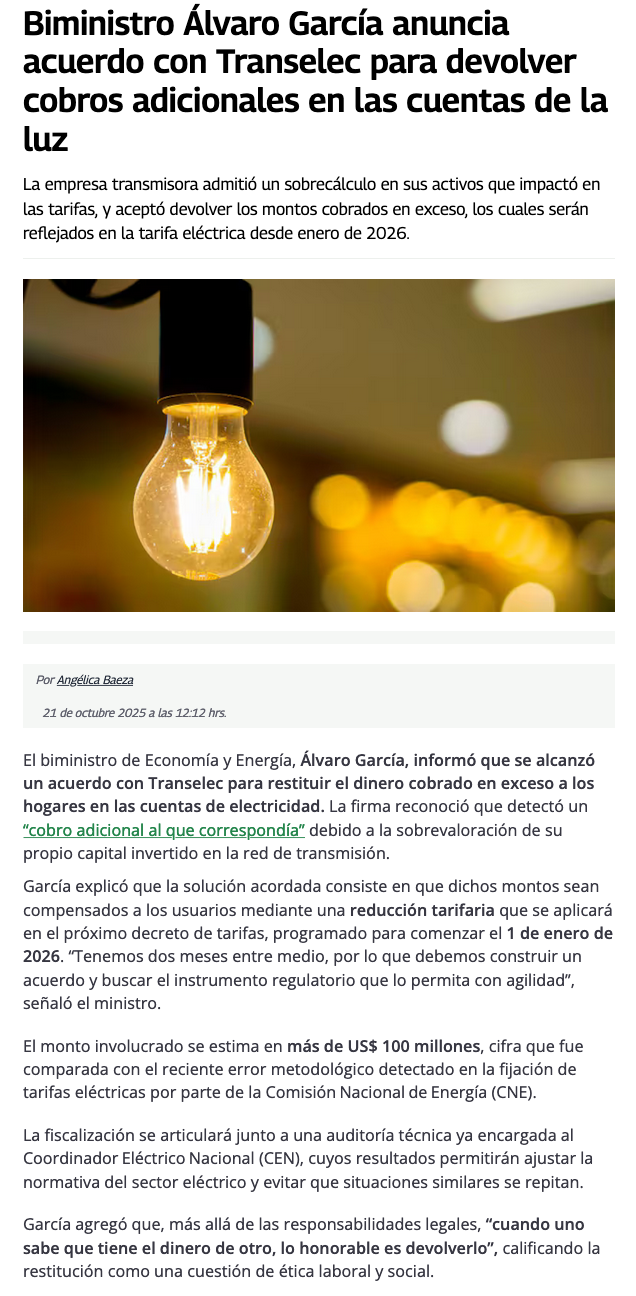 Biministro de Economía y Energía Alvaro García asegura que habrá "doble rebaja" en cuentas de luz tras nuevo error de cobro - (cambio21.cl)