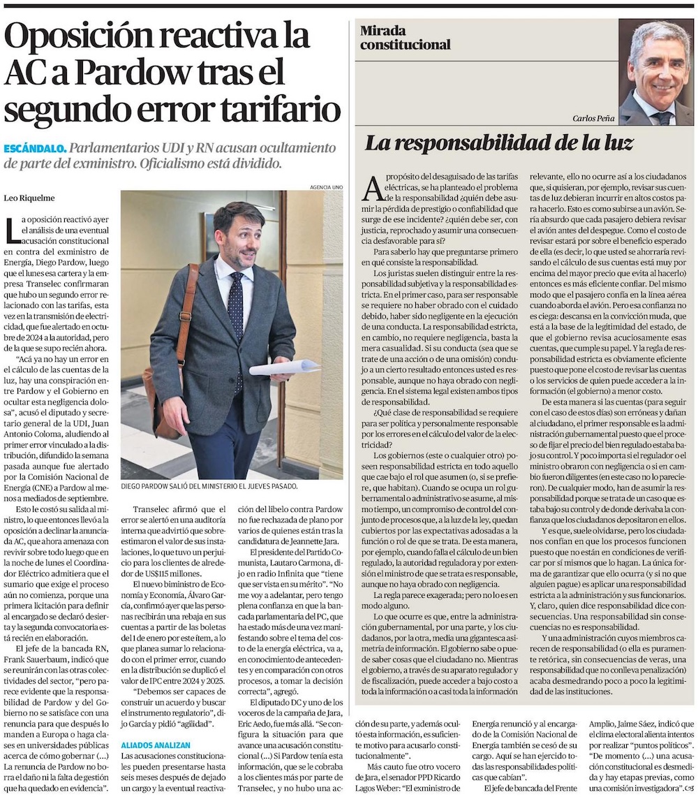Oposición reactiva la AC a Pardow tras el segundo error tarifario - (Medios Regionales Cadena El Mercurio)
