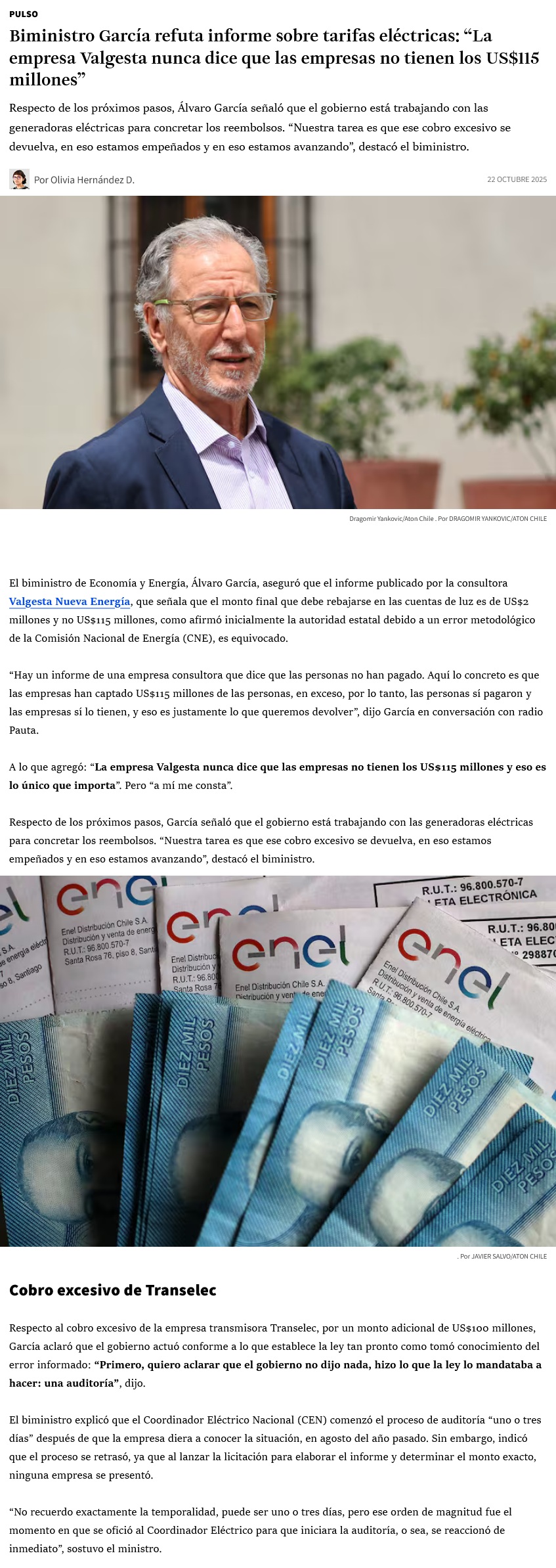 Ministro García refuta a consultora que contradice cálculo de cuentas de la luz: "Las personas sí pagaron. La plata que se cobró en exceso está en las empresas" - (DF Online)