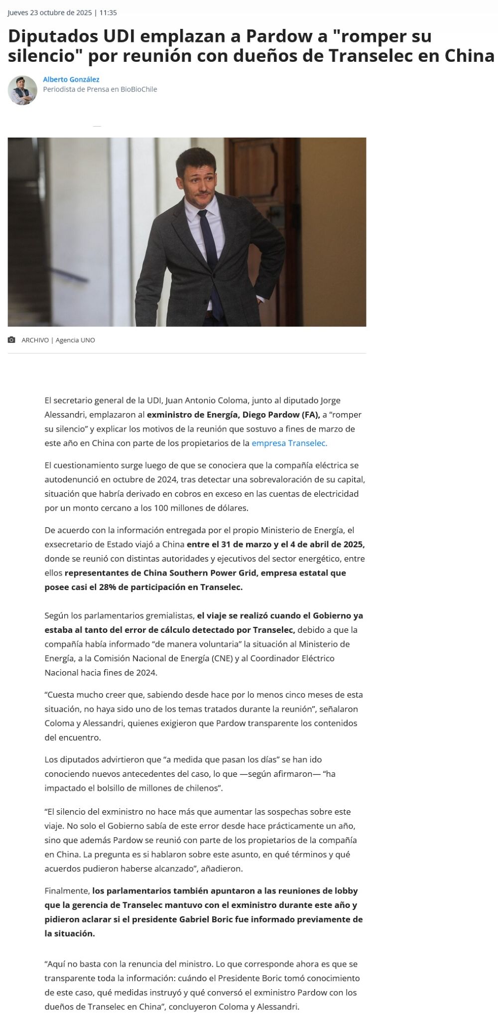 «Tarifazo»: Diputados UDI emplazan a ex ministro Pardow a «romper su silencio» y explicar motivos de su reunión con empresa Transelec en China - (g5noticias.cl)