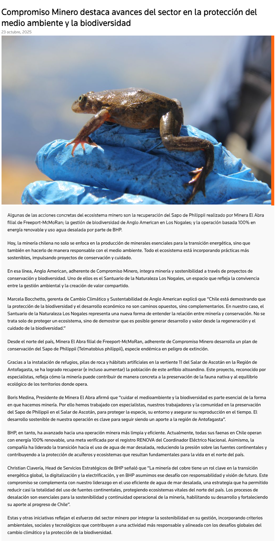 Compromiso Minero destaca avances del sector en la protección del medio ambiente y la biodiversidad - (diarioangamos)