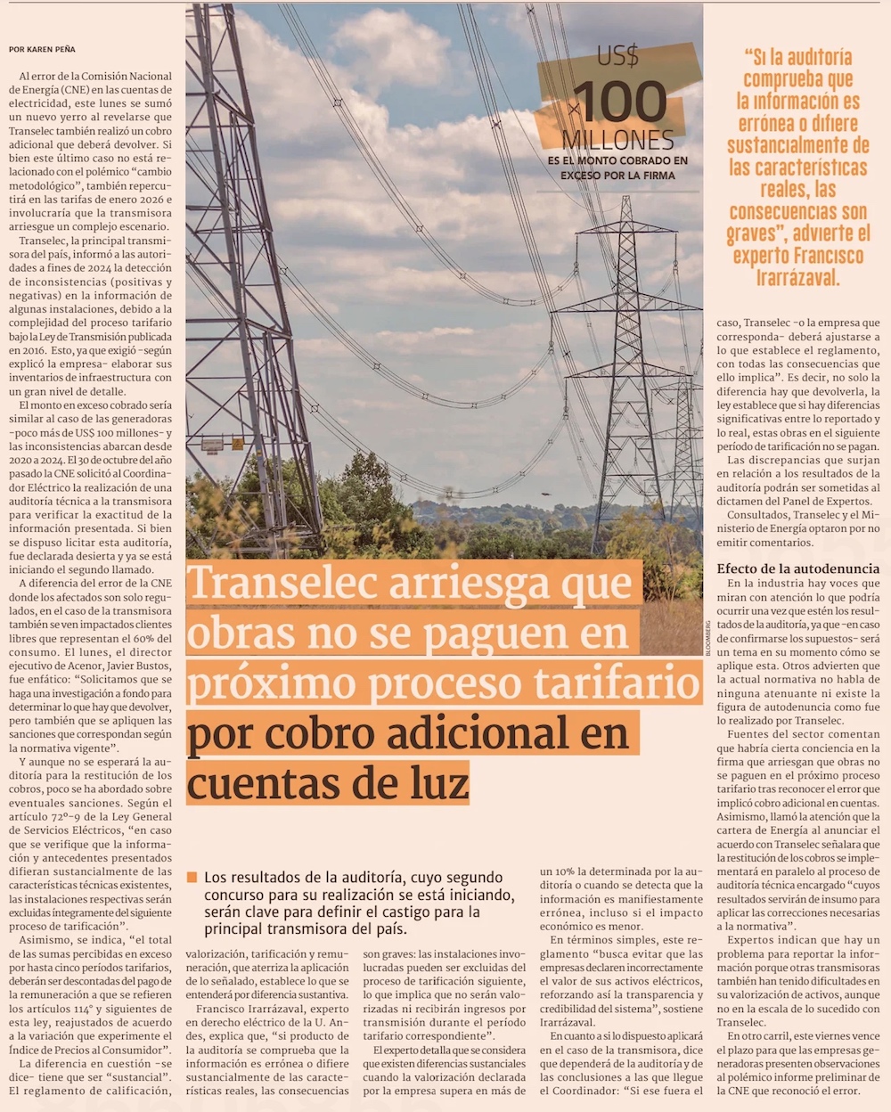 Más cobros extras: Transelec reconoce inconsistencias en sus registros tarifarios - (chilepaisminero.cl)