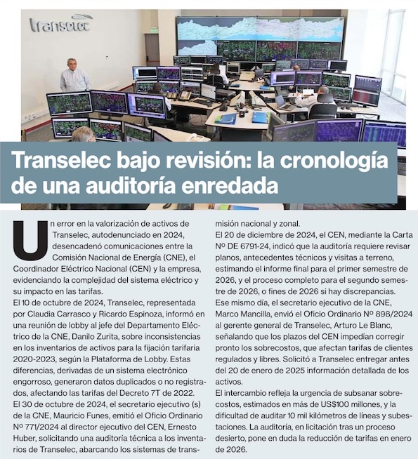 Más cobros extras: Transelec reconoce inconsistencias en sus registros tarifarios - (chilepaisminero.cl)