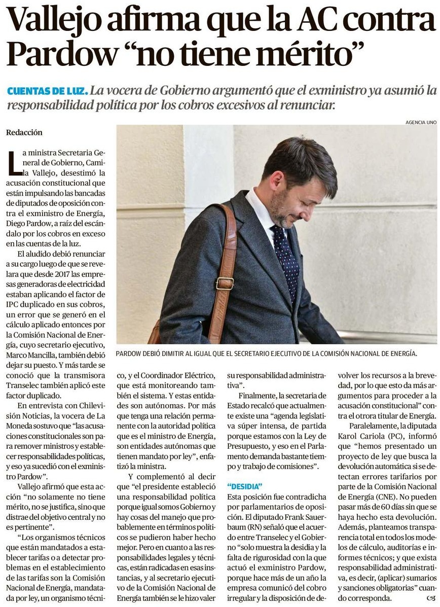Vallejo afirma que la AC contra Pardow "no tiene mérito" - (Crónica de Chillán)