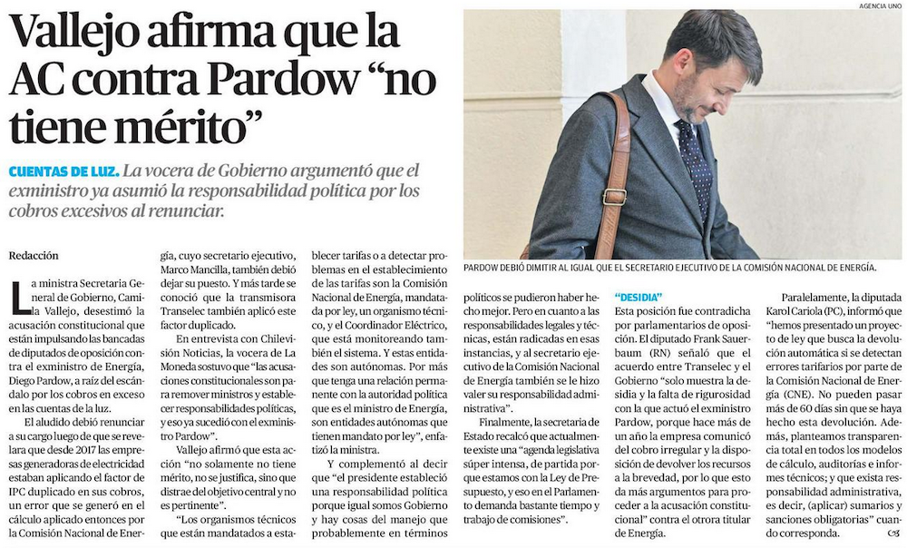 Vallejo afirma que la AC contra Pardow "no tiene mérito" - (El Austral de La Araucanía)