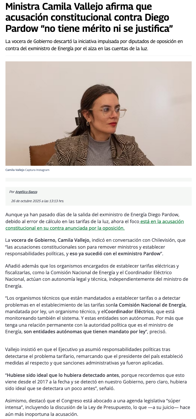 Vallejo afirma que la AC contra Pardow "no tiene mérito" - (Crónica de Chillán)