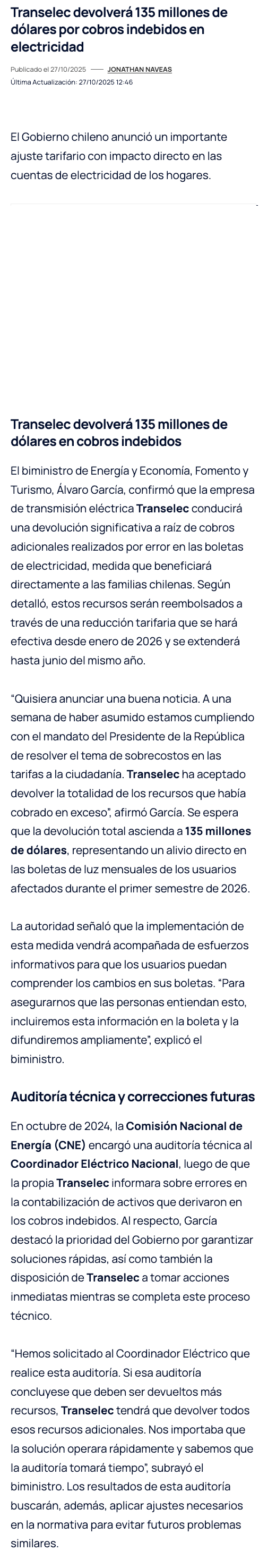 Biministro García anuncia que Transelec devolverá US$135 millones por cobro adicional en tarifas de electricidad - (portalminero)