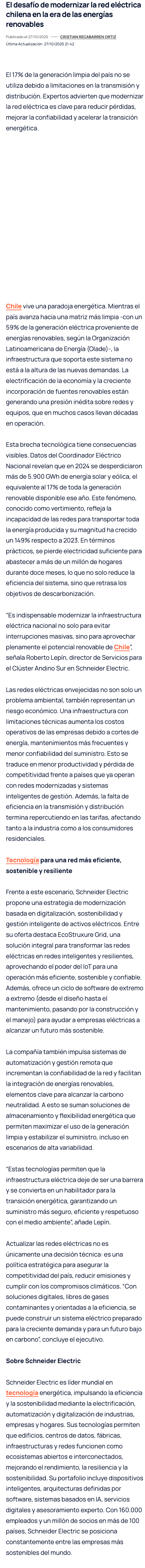 El desafío de modernizar la red eléctrica chilena en la era de las energías renovables - (nuevaminería online)