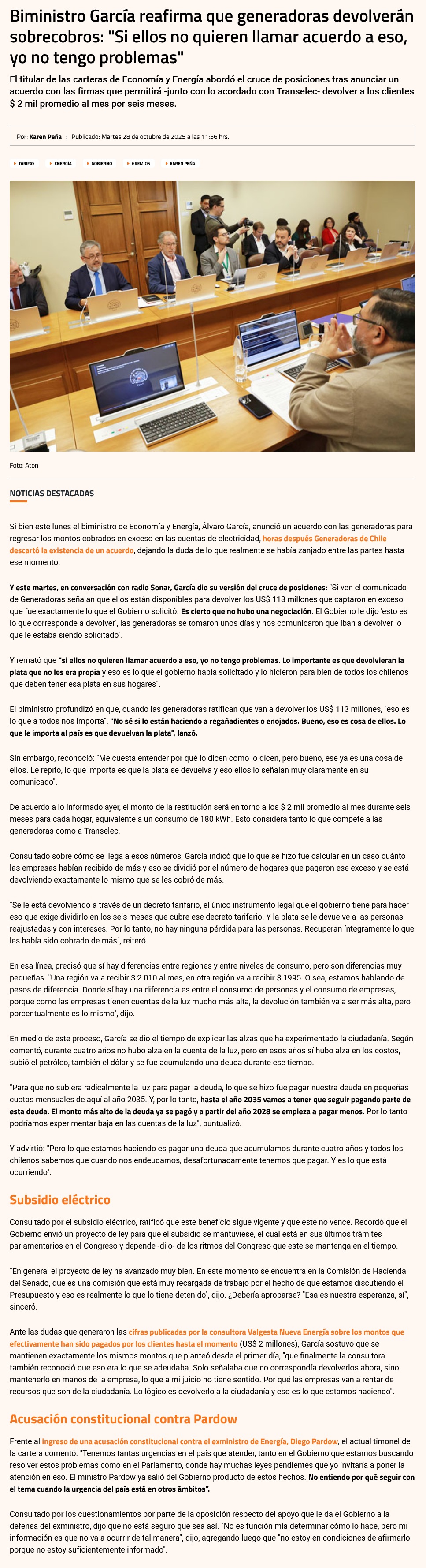 García y dichos de Generadoras negando “acuerdo”: “Es irrelevante la palabra, lo importante es que devuelvan la plata” - (cnnchile.com)