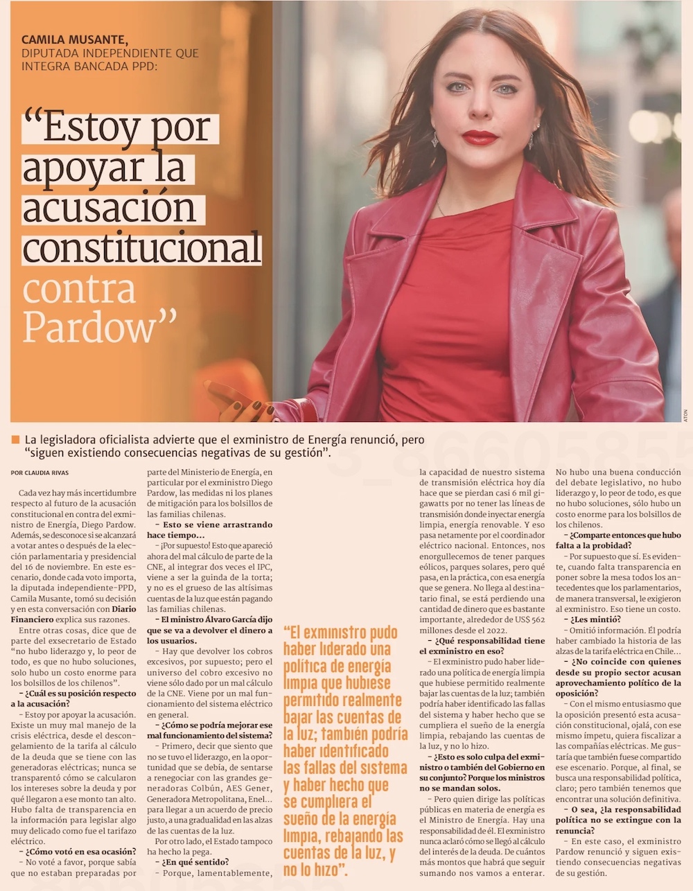 Diputada Camila Musante: “Estoy por apoyar la acusación constitucional contra Pardow” - (DF Online)