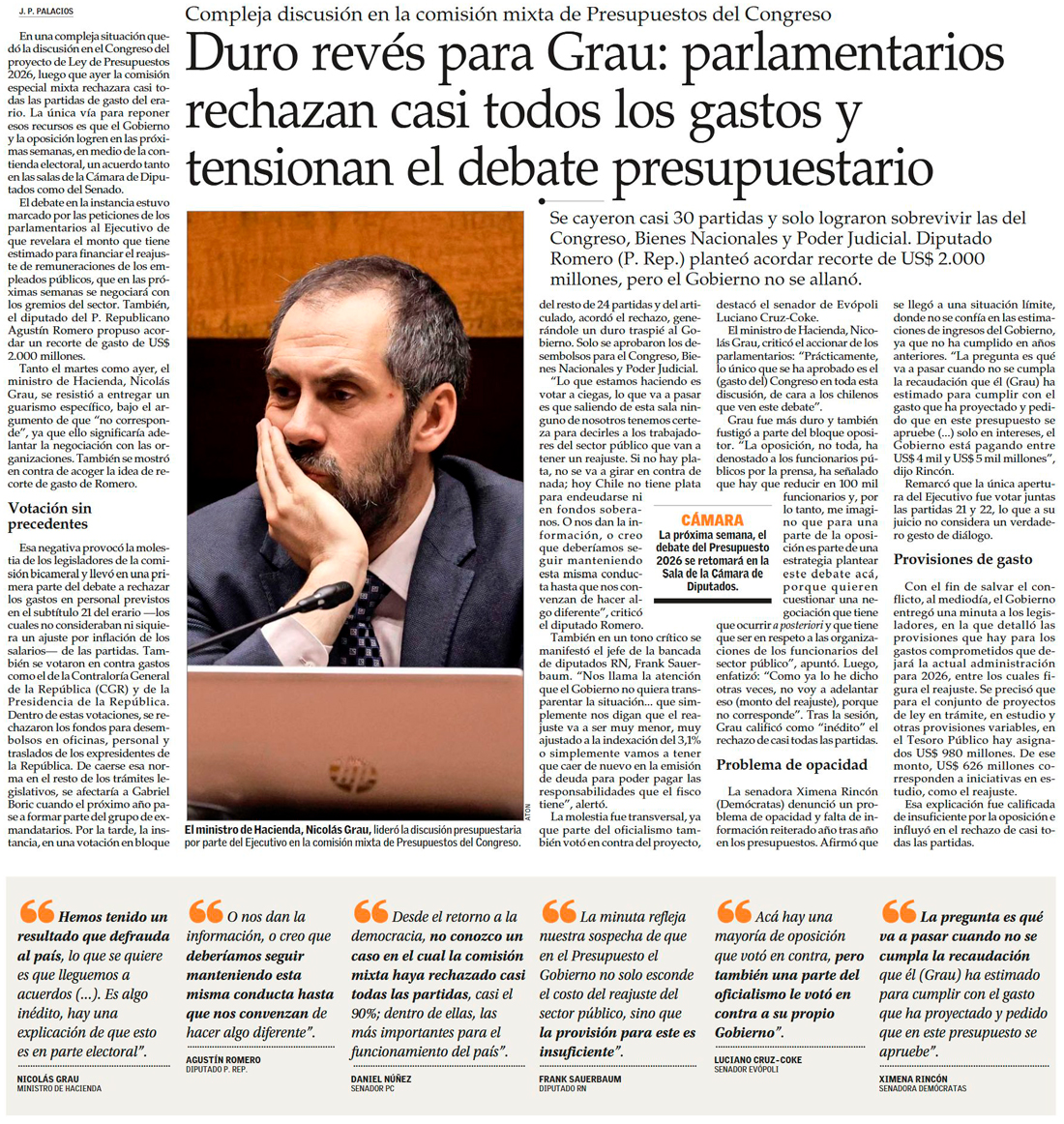 Oposición da duro golpe al gobierno: rechaza casi todas las partidas del Presupuesto y Grau acusa “motivación electoral” - (Pulso)