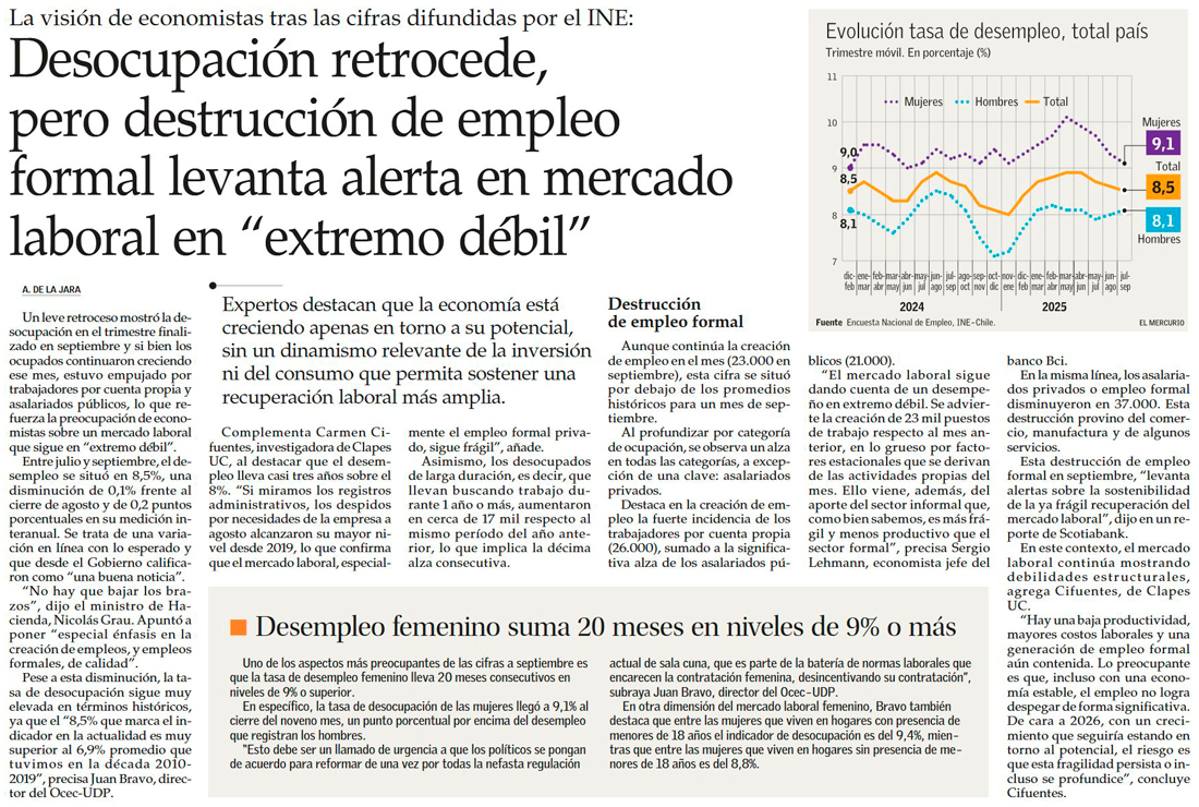 Desempleo suma nueva baja, pero analistas ven que aún queda camino por mejorar - (Diario Financiero)