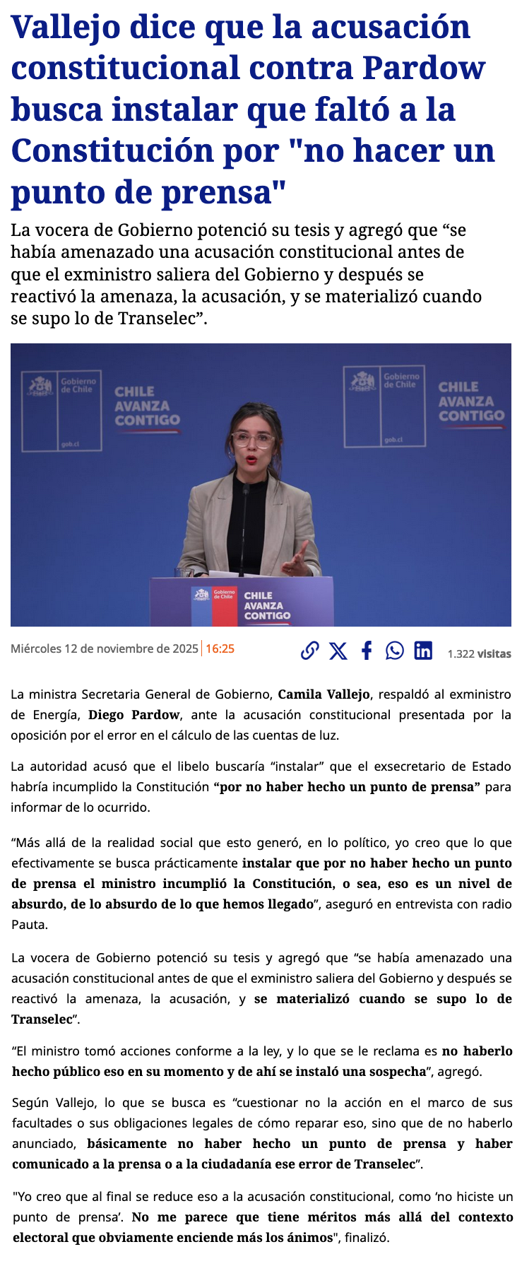 Vallejo acusa que AC contra Pardow buscaría instalar que faltó a la Constitución por “no haber hecho un punto de prensa” - (La Tercera Online)