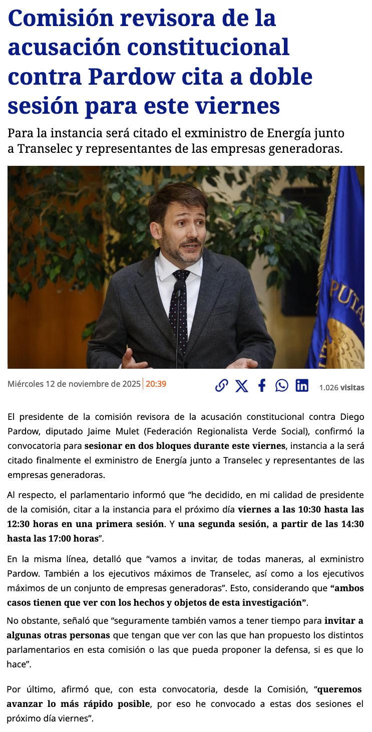 Mulet confirma citación de comisión revisora de AC contra Pardow para este viernes: votación aún sigue en suspenso - (La Tercera Online)
