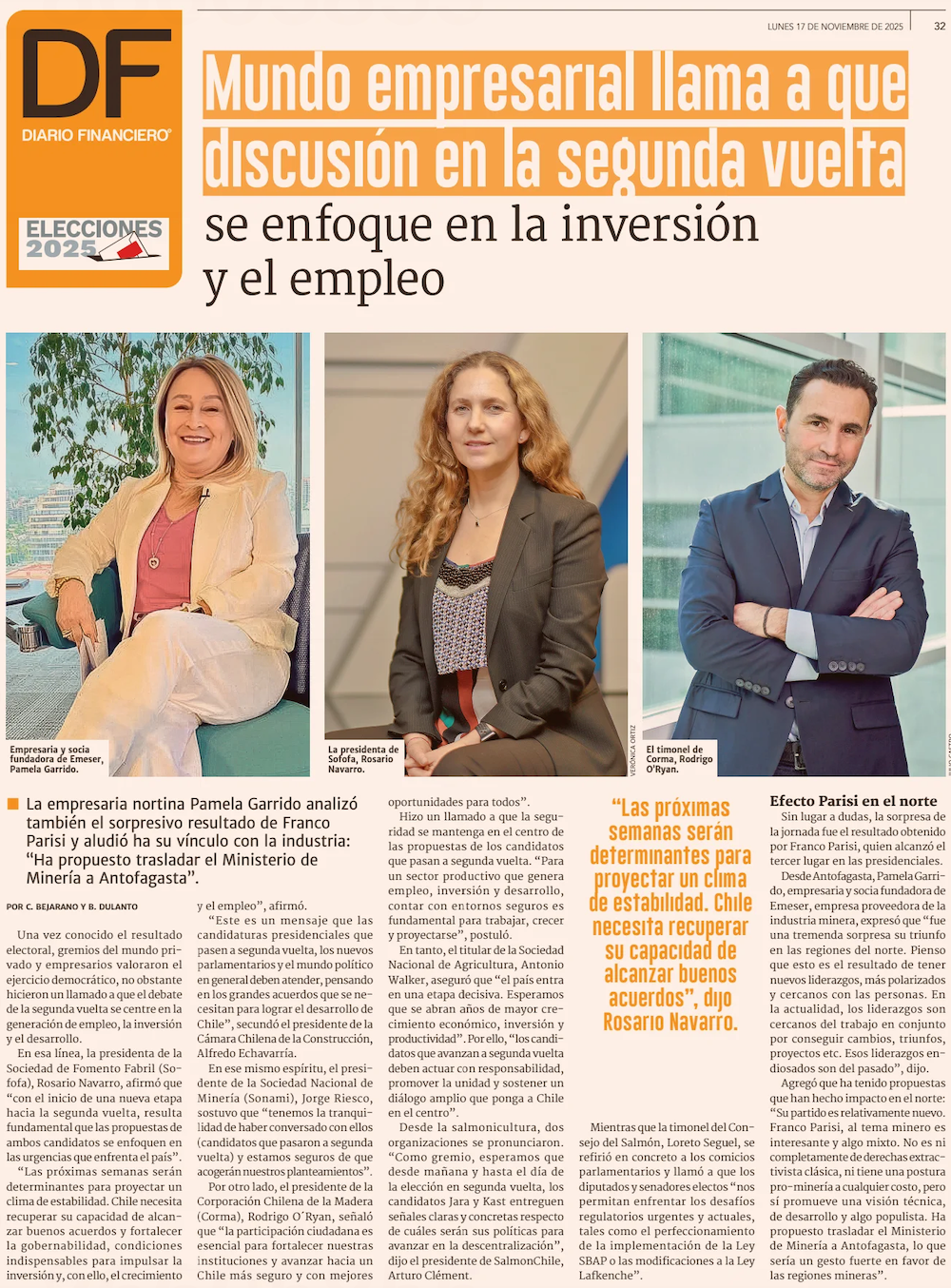 Empresariado valora jornada electoral y su resultado: “Los chilenos quieren un cambio” - (Pulso)