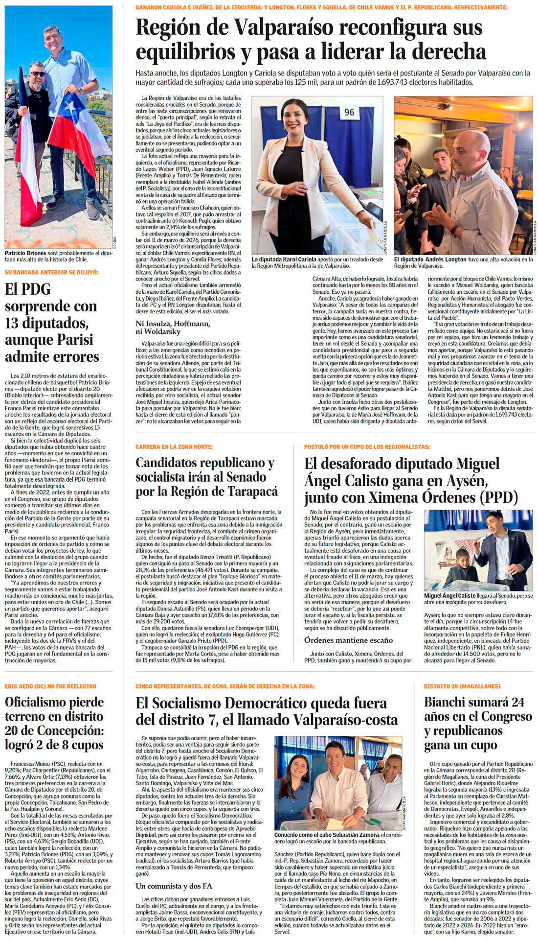 Kast triunfa en siete regiones, Jara gana en cinco y Parisi lidera en el norte del país - (El Mercurio de Santiago)