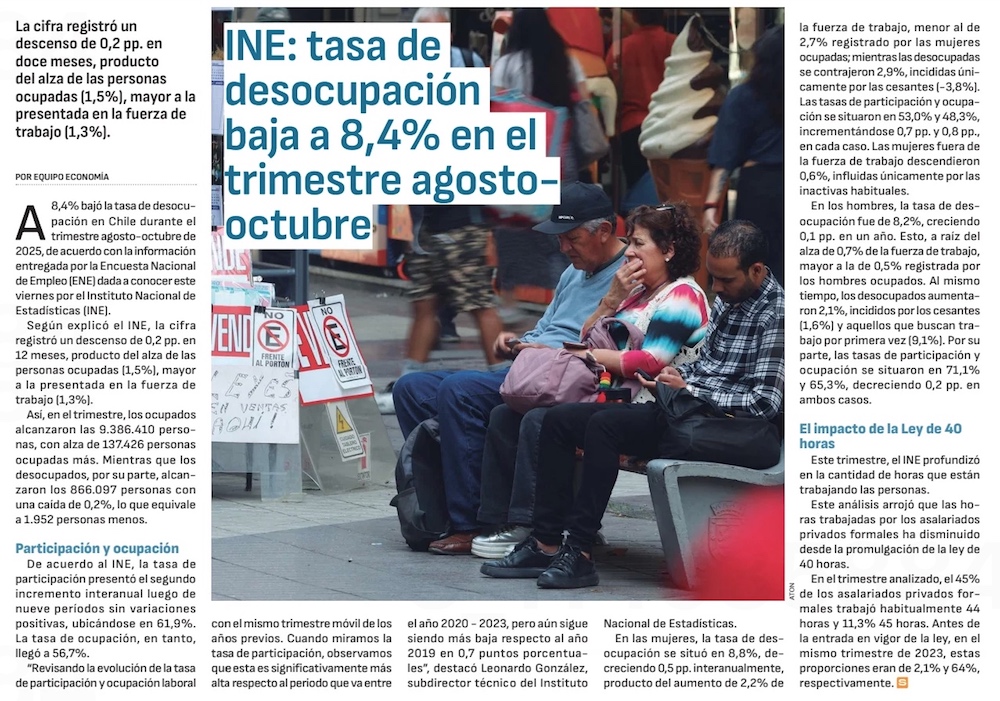 Por primera vez en 20 meses, el desempleo femenino queda bajo el 9% - (El Mercurio de Santiago)