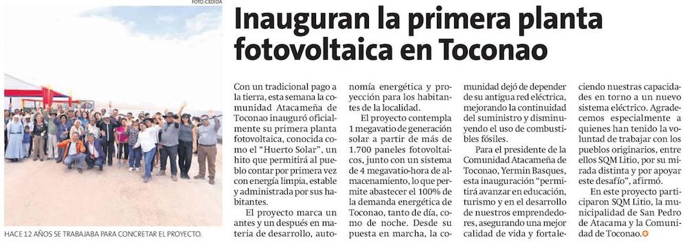 Minera y comunidad de Toconao celebran inauguración de planta fotovoltaica - (revistaei.cl)