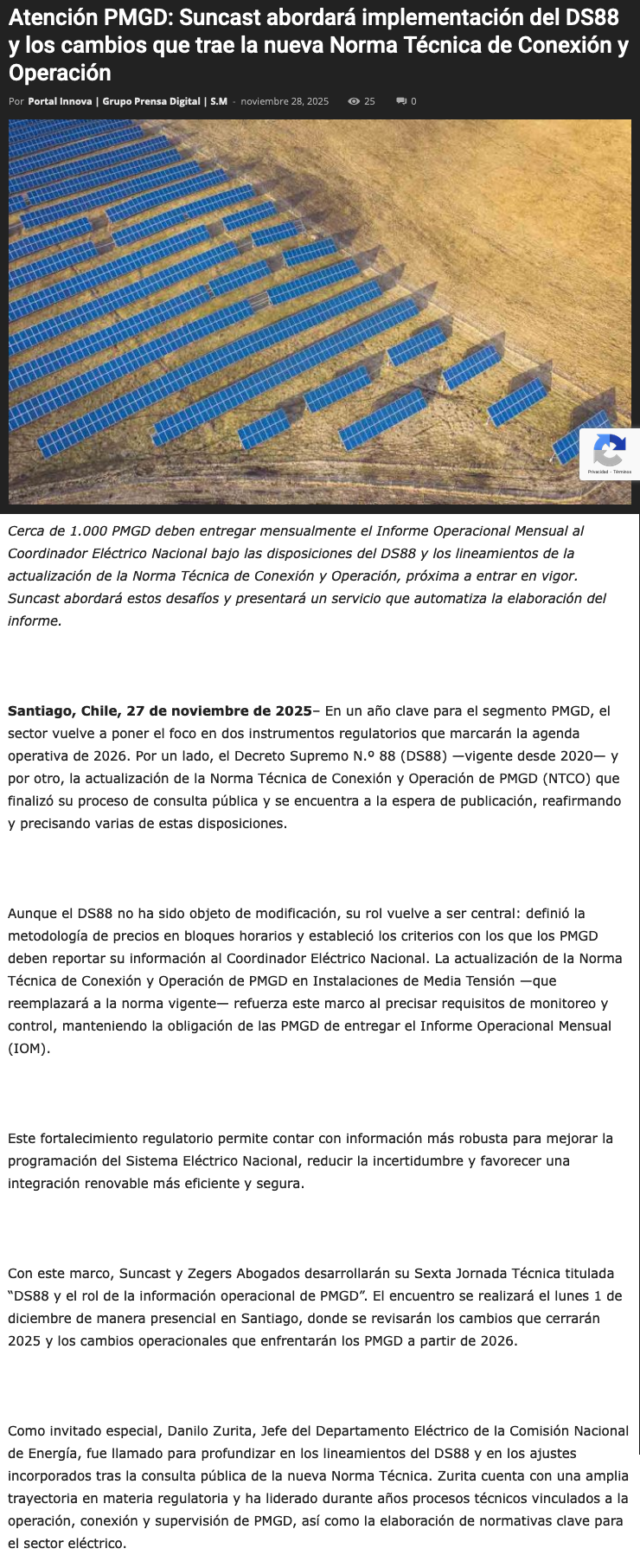 Atención PMGD: Suncast abordará implementación del DS88 y los cambios que trae la nueva Norma Técnica de Conexión y Operación - (tierramarillano.cl)