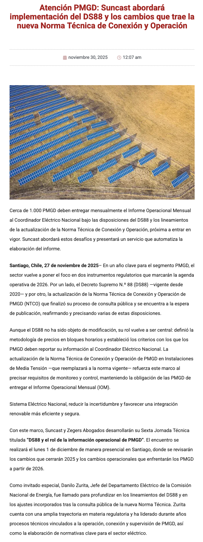 Atención PMGD: Suncast abordará implementación del DS88 y los cambios que trae la nueva Norma Técnica de Conexión y Operación - (portalinnova.cl)