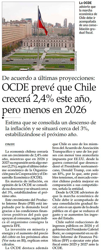 Ocde reduce sus perspectivas de crecimiento para Chile en 2026 y llama a fortalecer el tema fiscal - (Pulso)