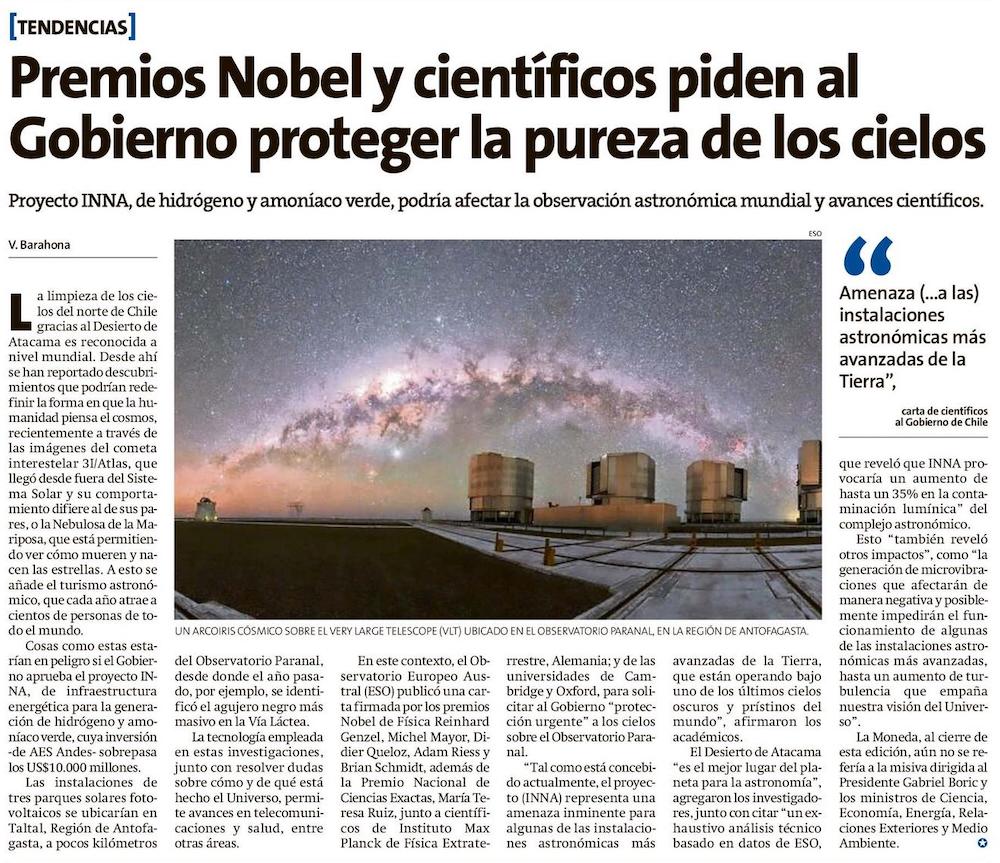 Astrónomos de todo el mundo piden a Chile proteger los cielos oscuros ante amenaza del proyecto INNA - (biobiochile online)